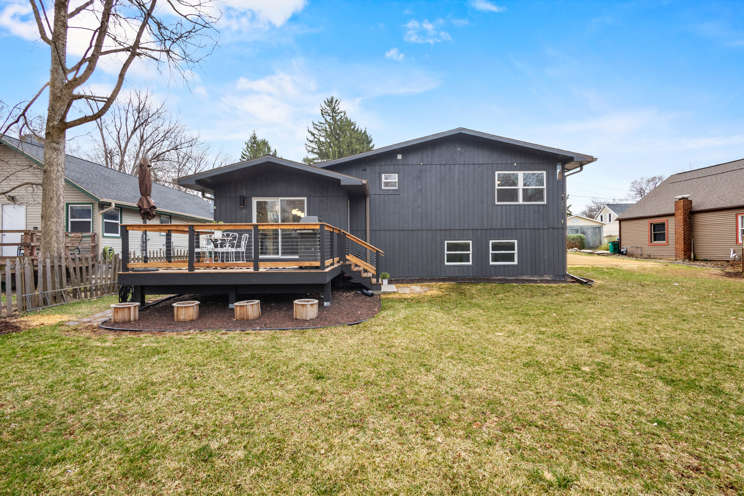 Enjoy beautiful lake views and easy access to Lake Waubesa, all while living on a quiet dead-end street. This home sits on two lots and offers fantastic outdoor spaces, including a large, private front patio and an expansive back deck, perfect for relaxing or entertaining. Inside, you’ll find a bright, open layout filled with natural light. The beautifully updated kitchen is a standout feature, complete with a large island with breakfast bar seating and abundant storage. The main level includes a convenient half bath and a primary suite with its own full bath, dual sink vanity, and attached laundry for added ease. Major improvements have already been taken care of, including a new roof, along with updated windows, insulation, electrical, and a newer furnace and A/C. The lower level provides flexible living space ideal for a rec room or potential additional bedroom. Located near the Yahara River Trail, you’ll enjoy easy access to scenic walking and biking paths, as well as nearby public access to Lake Waubesa for fishing, kayaking, or simply soaking in the outdoors, making it easy to embrace lake living.