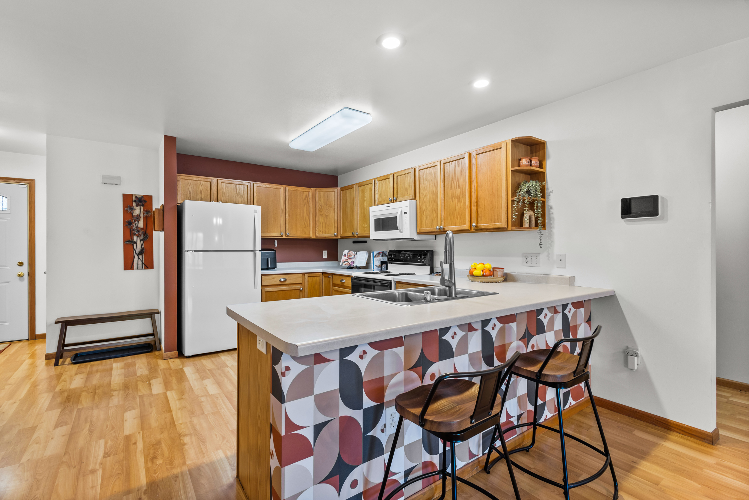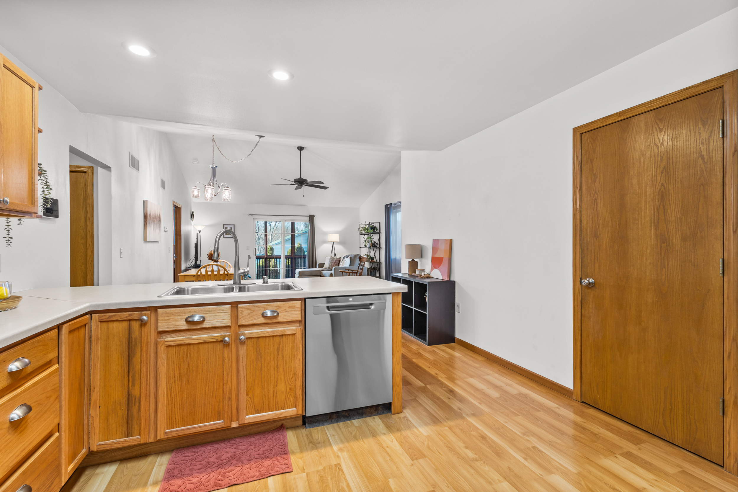 Enjoy an unbeatable east side location just steps from the Starkweather Creek Path, with quick access to the Eken Park neighborhood for dining and entertainment, plus an easy drive to the airport. Inside, the open-concept living, kitchen, and dining area creates an inviting space designed for both everyday comfort and easy entertaining. Vaulted ceilings elevate the living room, which opens directly to a screened-in deck,an ideal spot to unwind or host friends on warm evenings. The kitchen is equally functional and welcoming, offering a breakfast bar for casual meals and a generous pantry for extra storage. The thoughtfully designed split-bedroom layout provides privacy and flexibility. The spacious primary suite features a walk-in closet, while the second bedroom, full bath, and laundry (with newer 2023 washer and dryer!) are situated on the opposite side of the home. Downstairs, the walk-out lower level offers exciting potential. The walk-out lower level (39'x29') is ready to be finished with plumbing in place for a future bath, making it easy to add finished space. A covered patio adds even more versatility, extending your living area outdoors. Topping it all off, a 2024 roof provides added peace of mind. This is a home that balances location, comfort, and opportunity all in one inviting package. Note: Home is a half duplex.