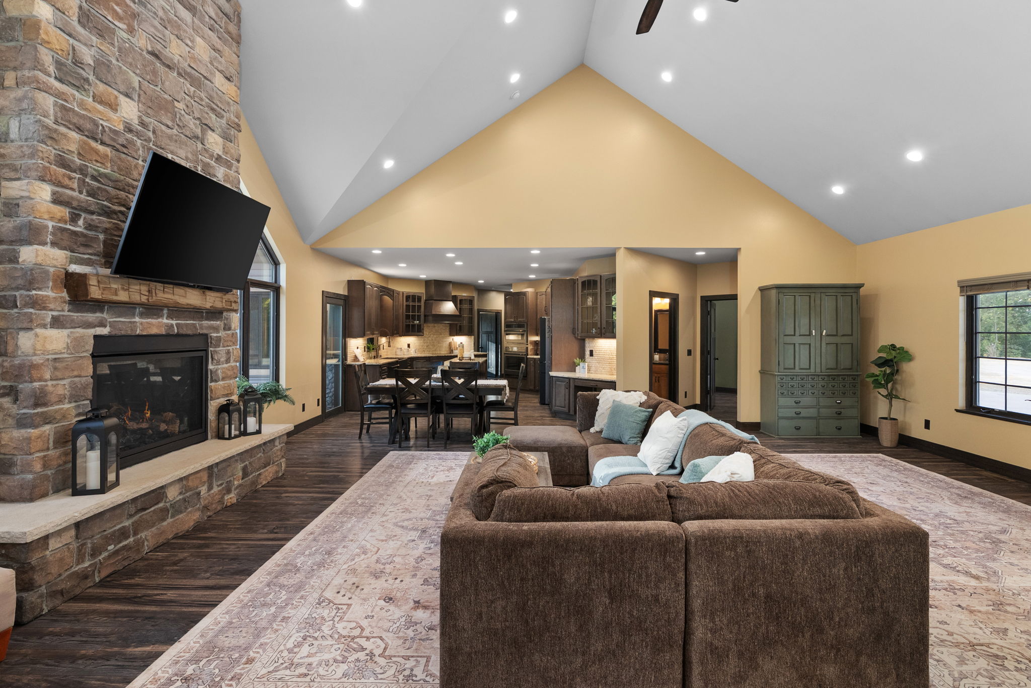 Experience resort-style living every day on this remarkable 30-acre property and live a lifestyle built around relaxation, recreation, and connection with nature.The backyard is an entertainer’s dream, complete with a stone fireplace, outdoor kitchen with built-in grill, and relaxing hot tub overlooking peaceful wooded views and scenic trails. An outbuilding provides incredible storage and space for hobbies or equipment. There is also a 3-car garage, which includes an EV charger for modern convenience.