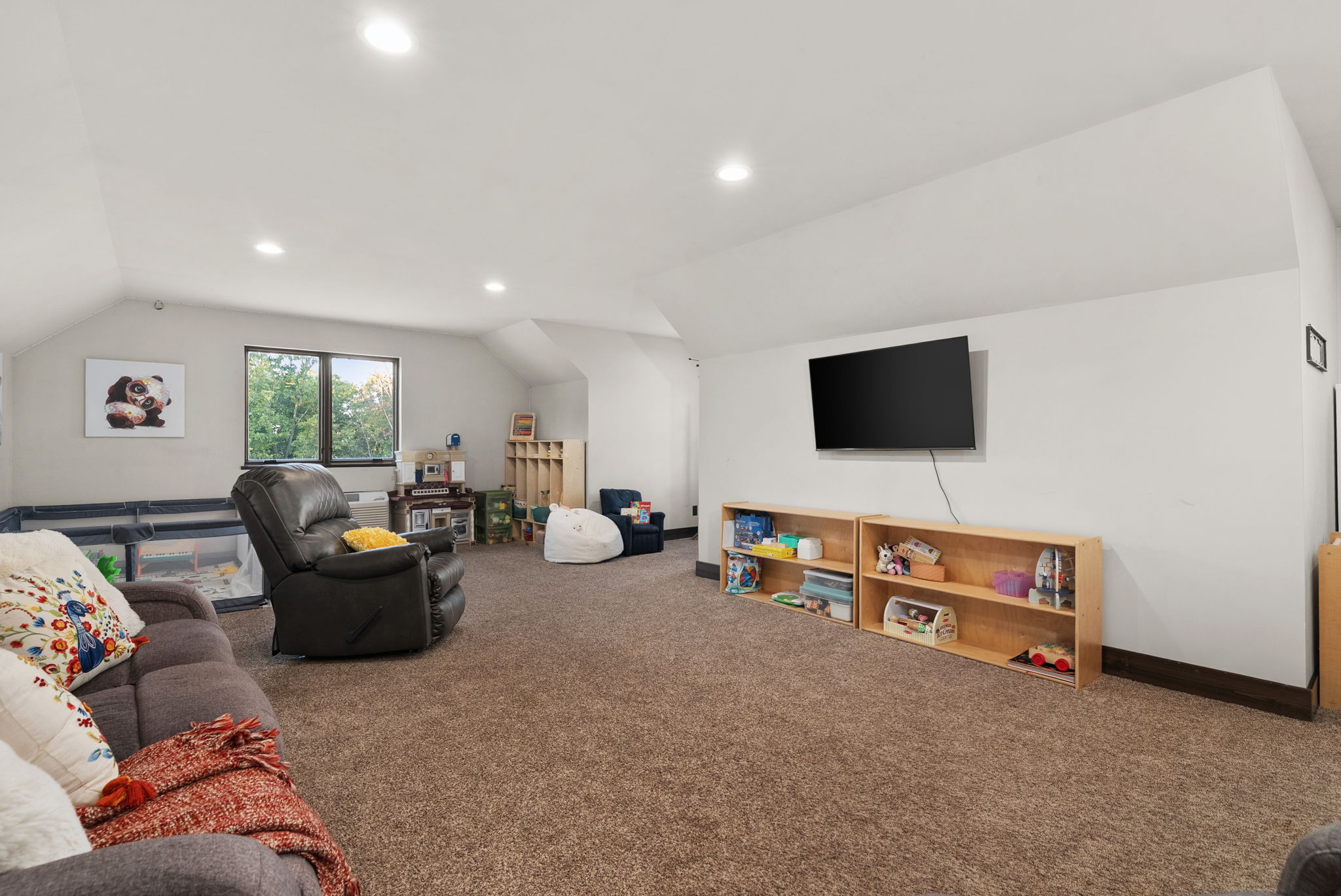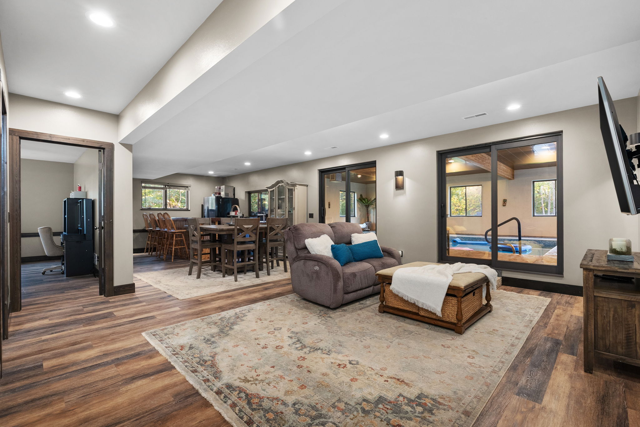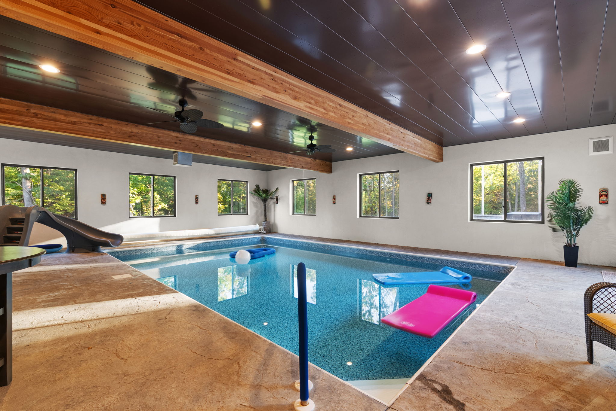 The heated indoor pool, for year-round enjoyment, anchors an entertainer’s dream level with a spacious family room and bar. Upstairs, a large rec room provides even more flexible living space for play, games, or movies.